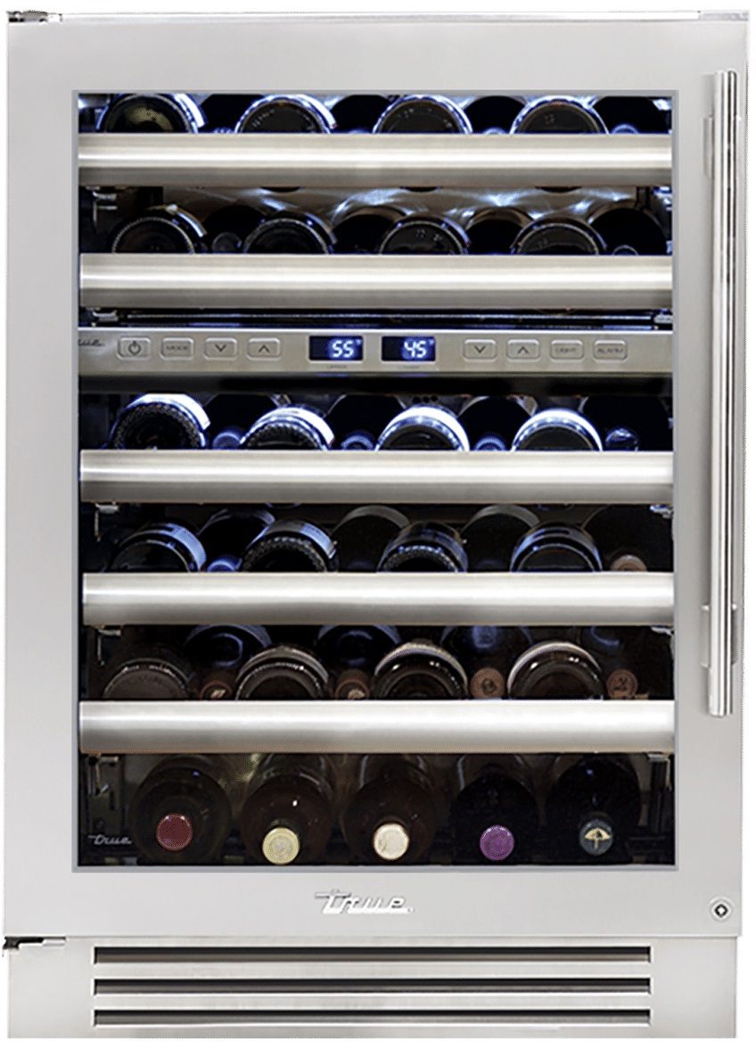 True®'s dual-zone wine storage system has been designed to preserve your favorite vintage. Two independent zones allow for complete flexibility with a temperature range from 40°F to 65°F. Equipped with vibration-dampening racks that cradle up to 45 bottles ensures the ideal environment for your collection.Read More